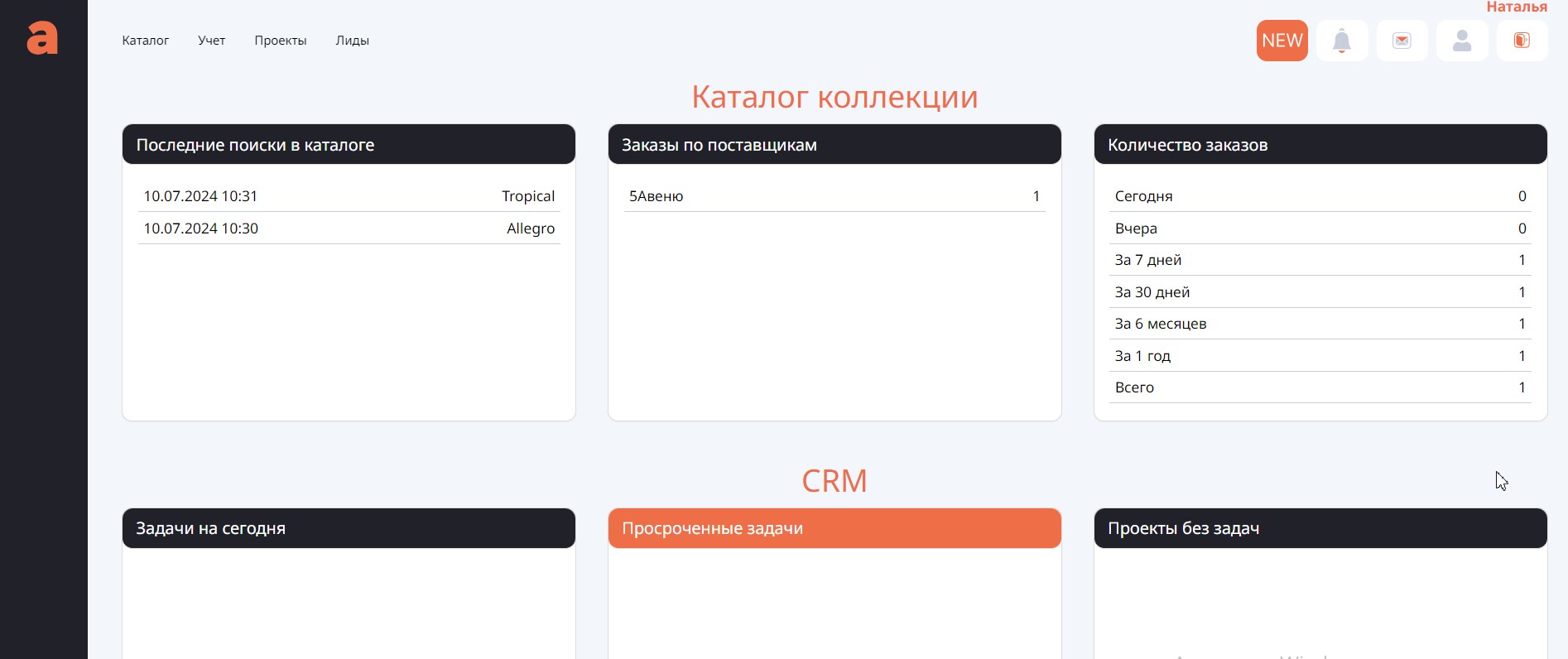 1 часть - это отражение работы с Каталогом коллекций поставщиков. Здесь доступна информация о последних поисках в каталоге, информация по поставщикам и статистика работы.
