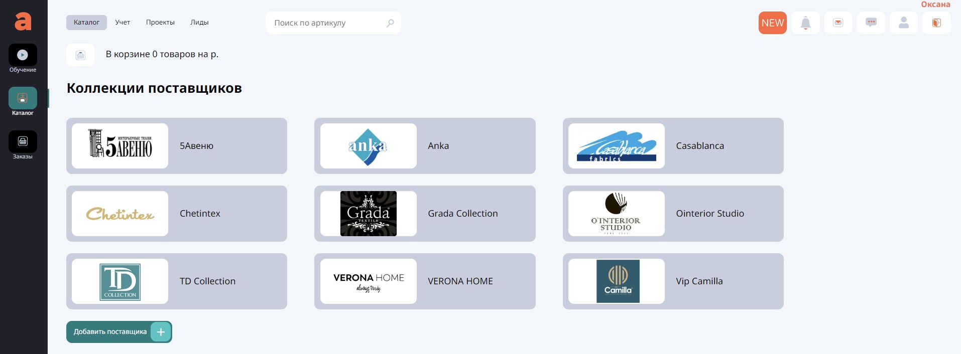 В Каталоге вы можете работать с коллекциями поставщиков, которые сотрудничают с Aspiot.