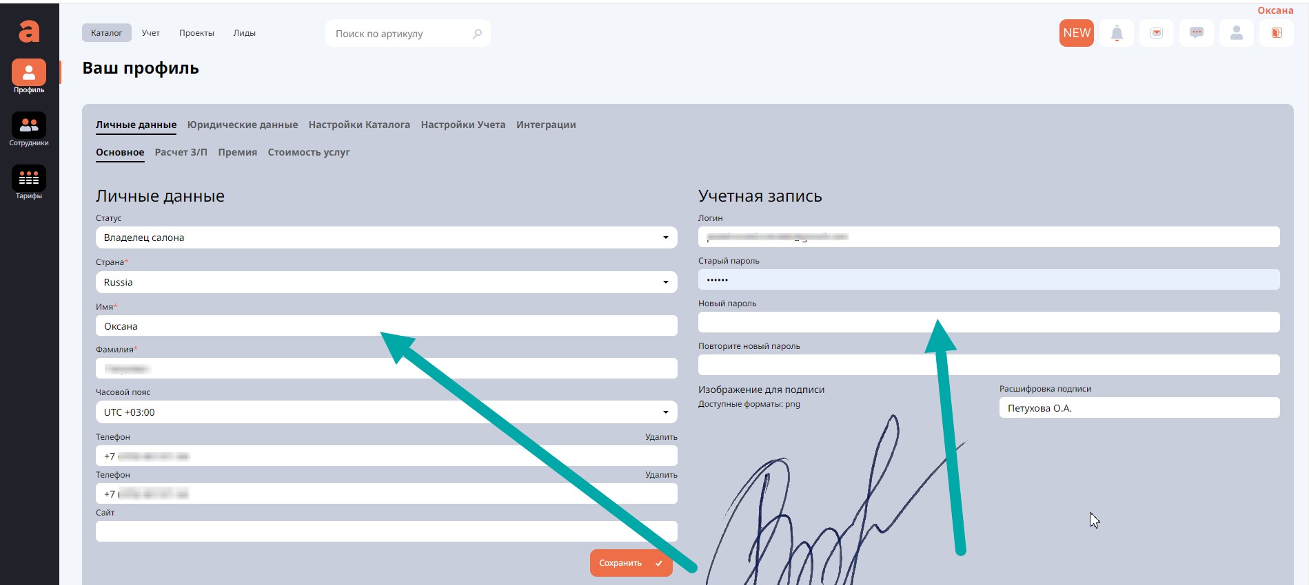 Все настройки профиля разделены на несколько разделов. В разделе Личные данные на вкладке Основное в левой части экрана данные, которые вы указали при регистрации, в правой - возможность изменить свой пароль.
