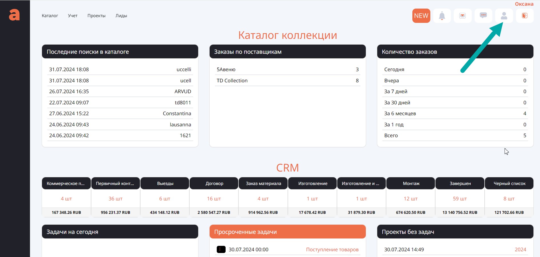Чтобы попасть в свой профиль после входа в программу необходимо нажать в правом верхнем углу на значок человечка.