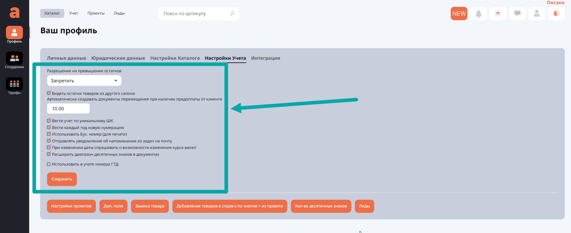 Как сделать настройку на этой странице профиля есть дополнительная инструкция Настройка учета