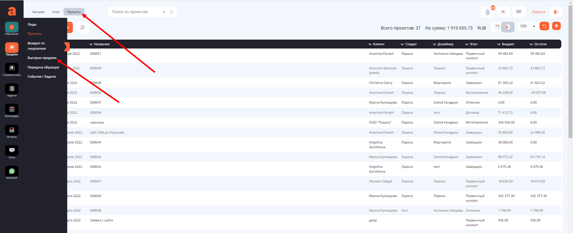 В системе Аспиот предусмотрена работа и с такими клиентами, которые не будут делать у вас большой заказ, а обратятся к вам за покупкой какого либо товара, или услуги, и для этого не нужно оформлять проект и двигать его по этапам. Это розничная продажа. Мы должны зафиксировать в системе изменение остатков товара или выполнение услуги и получение денежных средств . В системе эти операции называются Быстрые продажи.