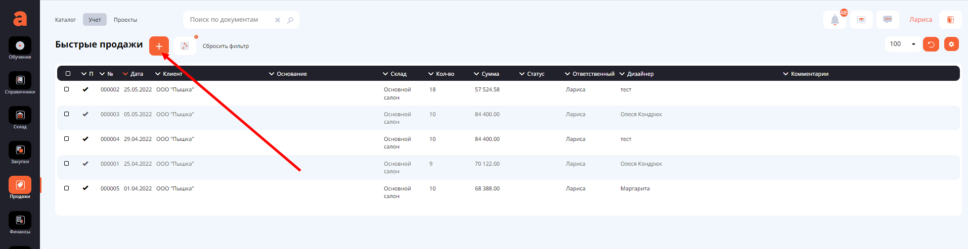 Откроем журнал быстрых продаж и создадим новую быструю продажу, нажав на кнопку «+»