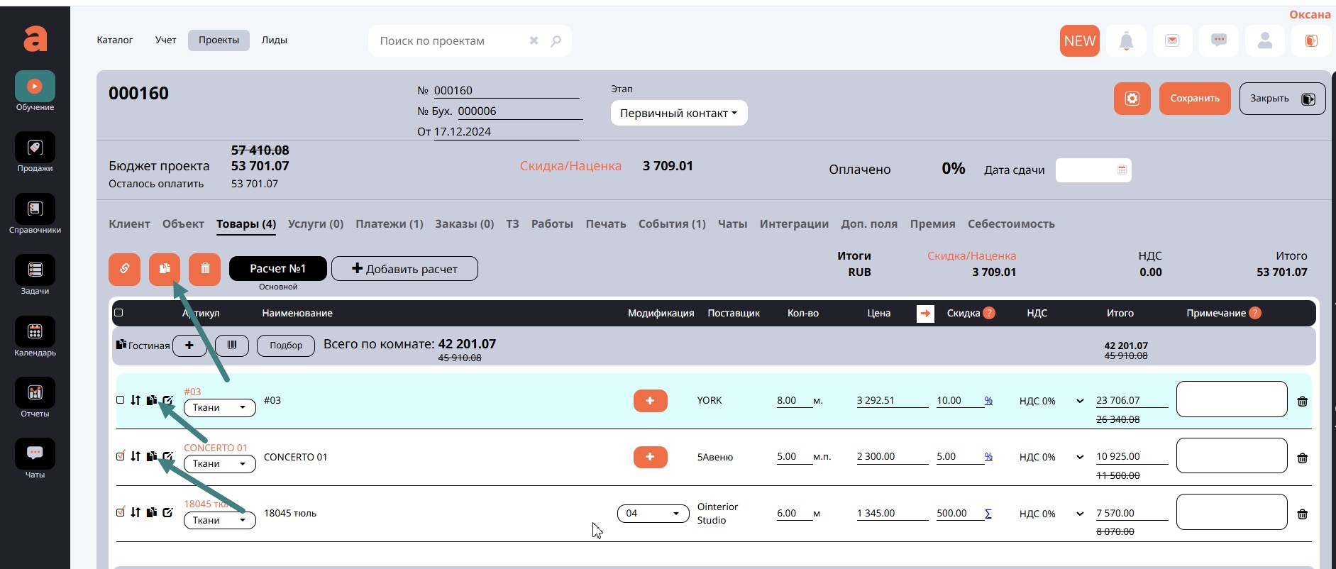 Чтобы не добавлять несколько раз один и тот же товар, для разных комнат, например, можно сделать копию уже добавленного товара и потом привязать его к другой комнате.