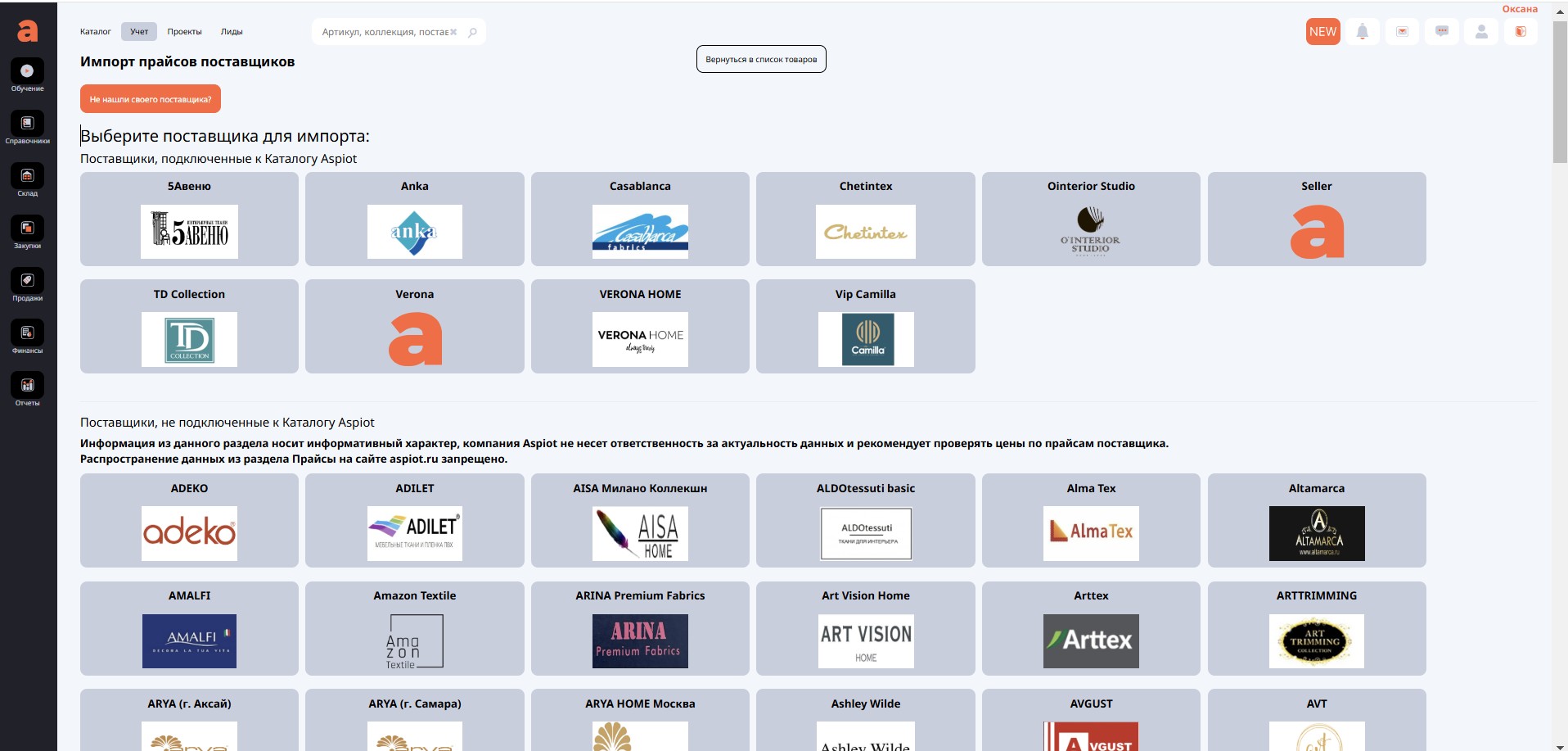 - это коллекции поставщиков, которая расположена на вкладке Каталог, поставщики которые сотрудничают с Аспиот;