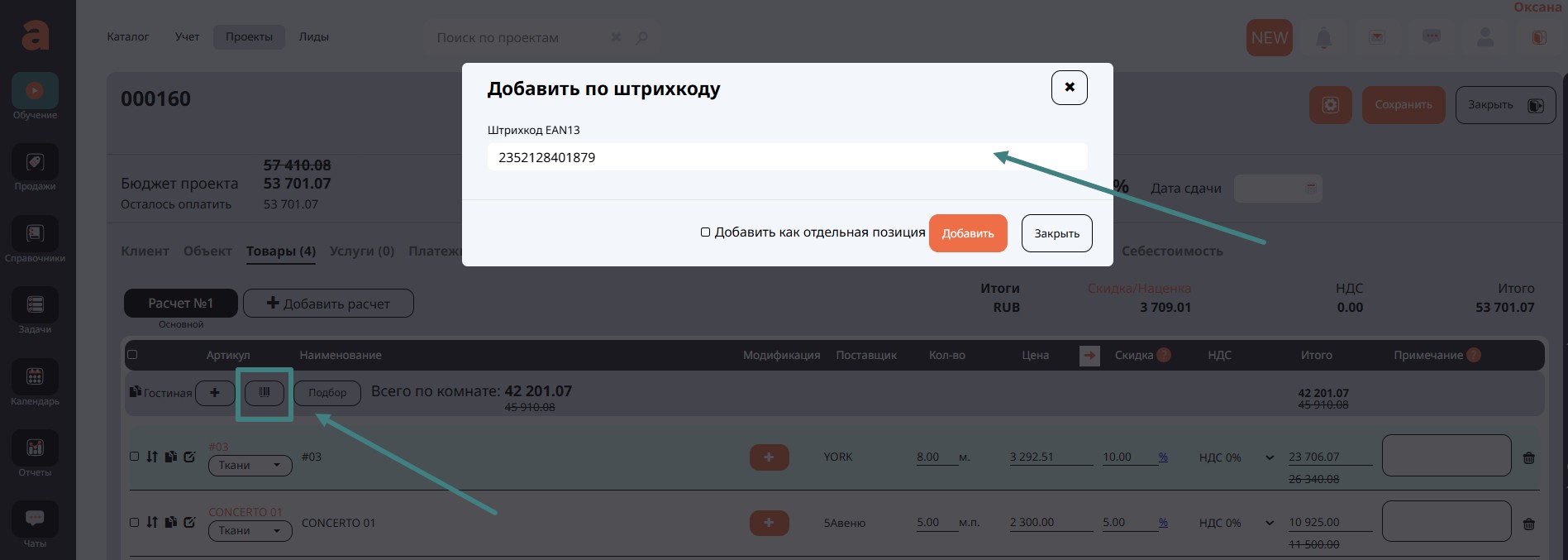 Если вы знаете штрих-код товара, вы можете добавить его в проект по кнопке Штрих-код.