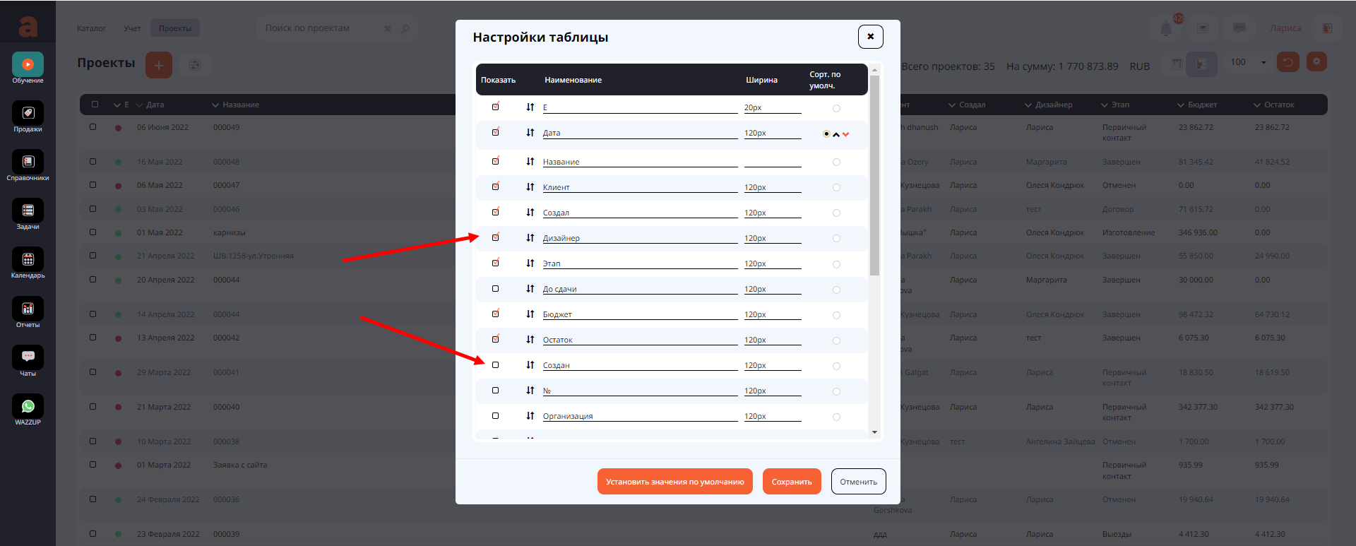 На вкладках Специальные возможности и Проекты вы определяете сможет ли ваш сотрудник видеть и редактировать параметры проекта – дату, название, бюджет проекта. Будут ли ему доступны все этапы и все вкладки проекта, или, например, швее будут доступны только вкладки Товары, Услуги, ТЗ, работы.