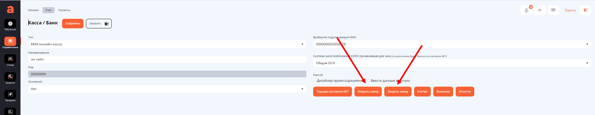 Перед работой с онлайн кассой вы должны открыть смену, а в конце рабочего дня закрыть смену.