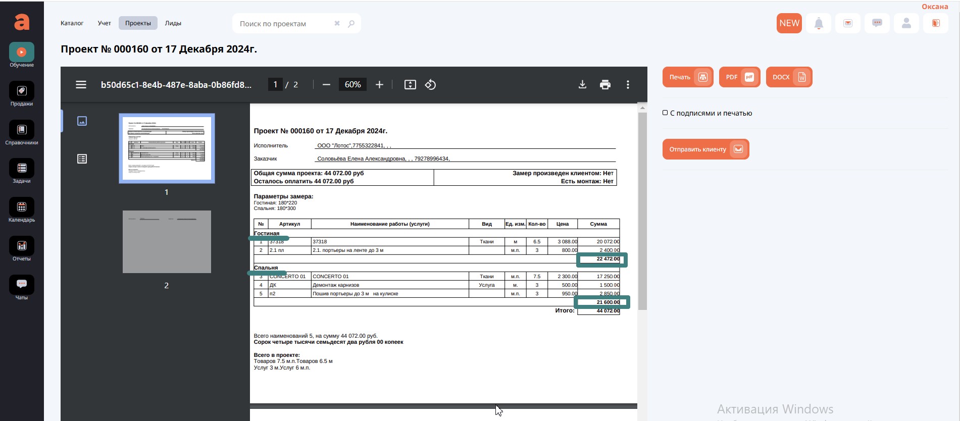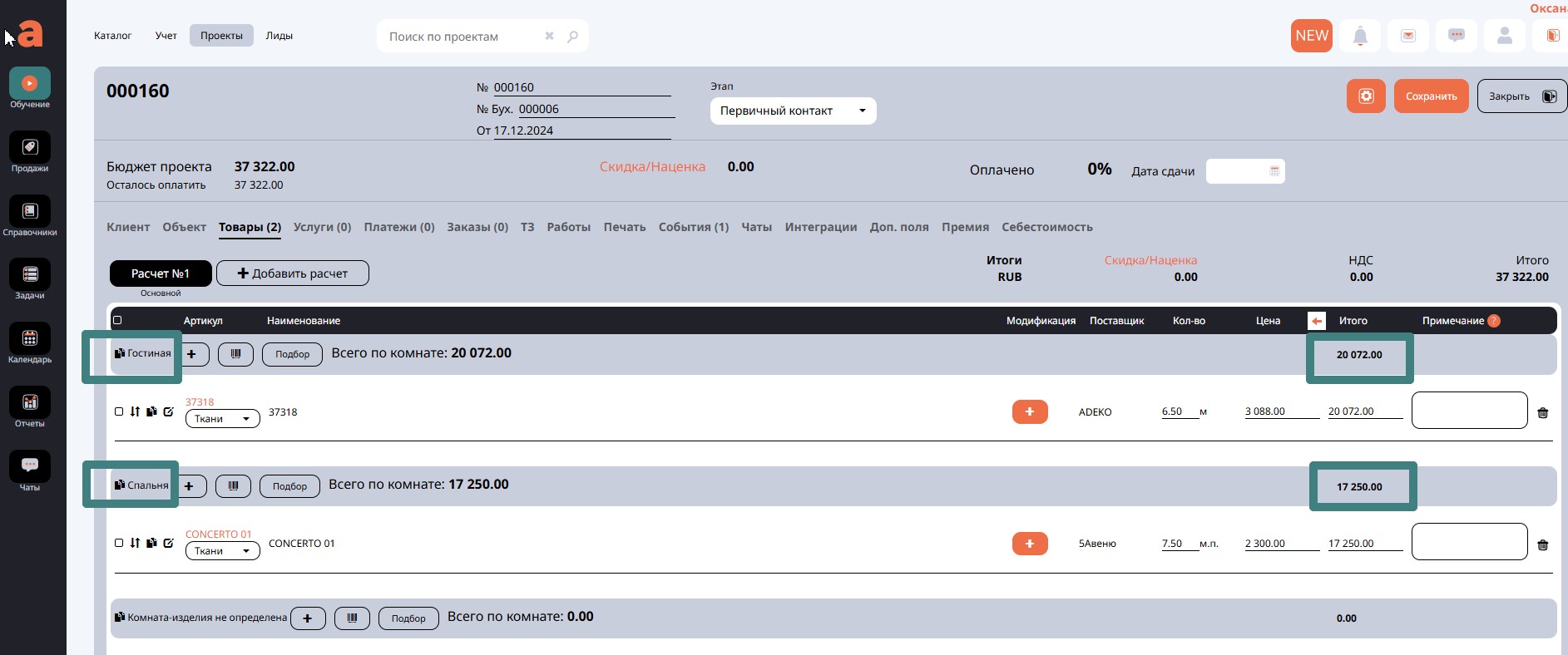 После заполнения шапки проекта и информации о клиенте время переходить к следующей вкладке – Объект.