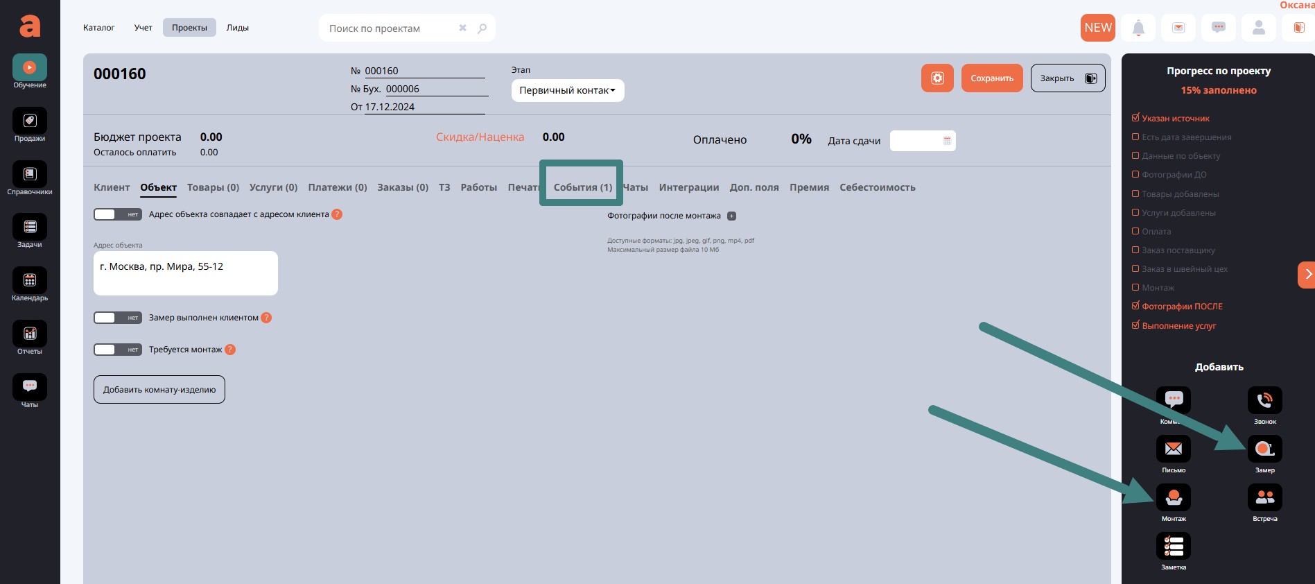 Ведение проекта: объект, замер.