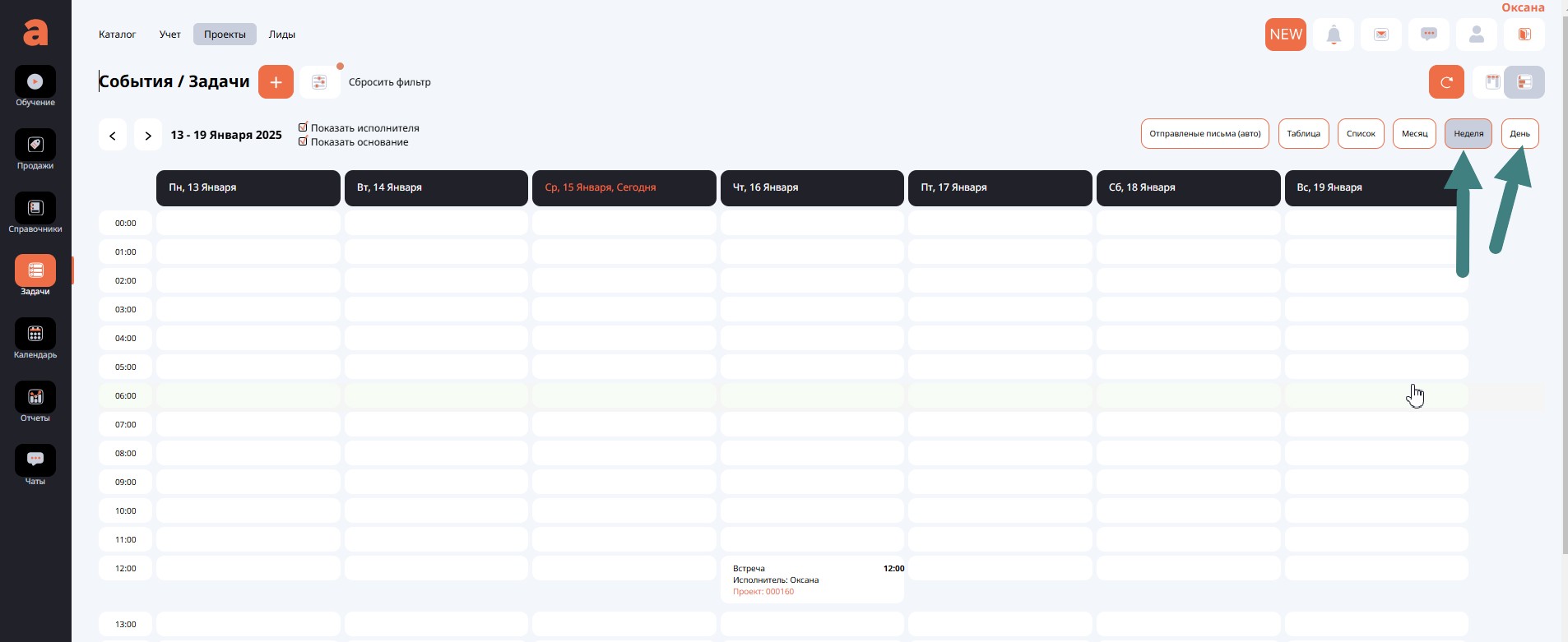 Вы можете сделать более детальное планирование, если откроете Задачи в режиме недели или дня, и здесь уже более точно установить время события с указание конкретного часа.