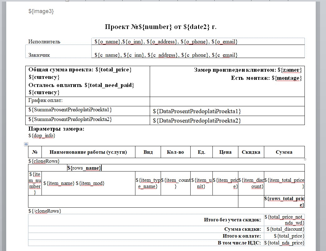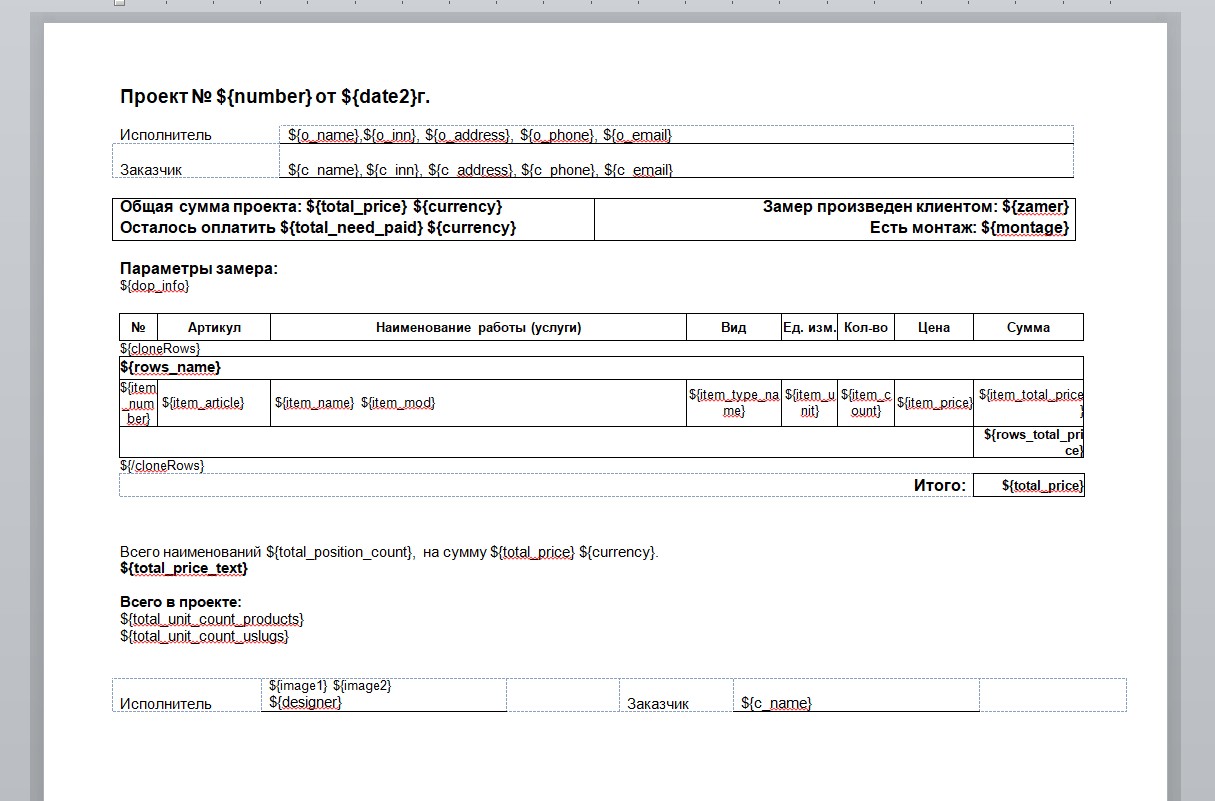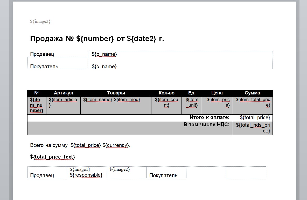 Скачаем и откроем шаблон. Мы видим в этом документе понятные нам слова, такие как название самого документа, покупатель, и некую комбинацию символов, которая начинается со знака $.