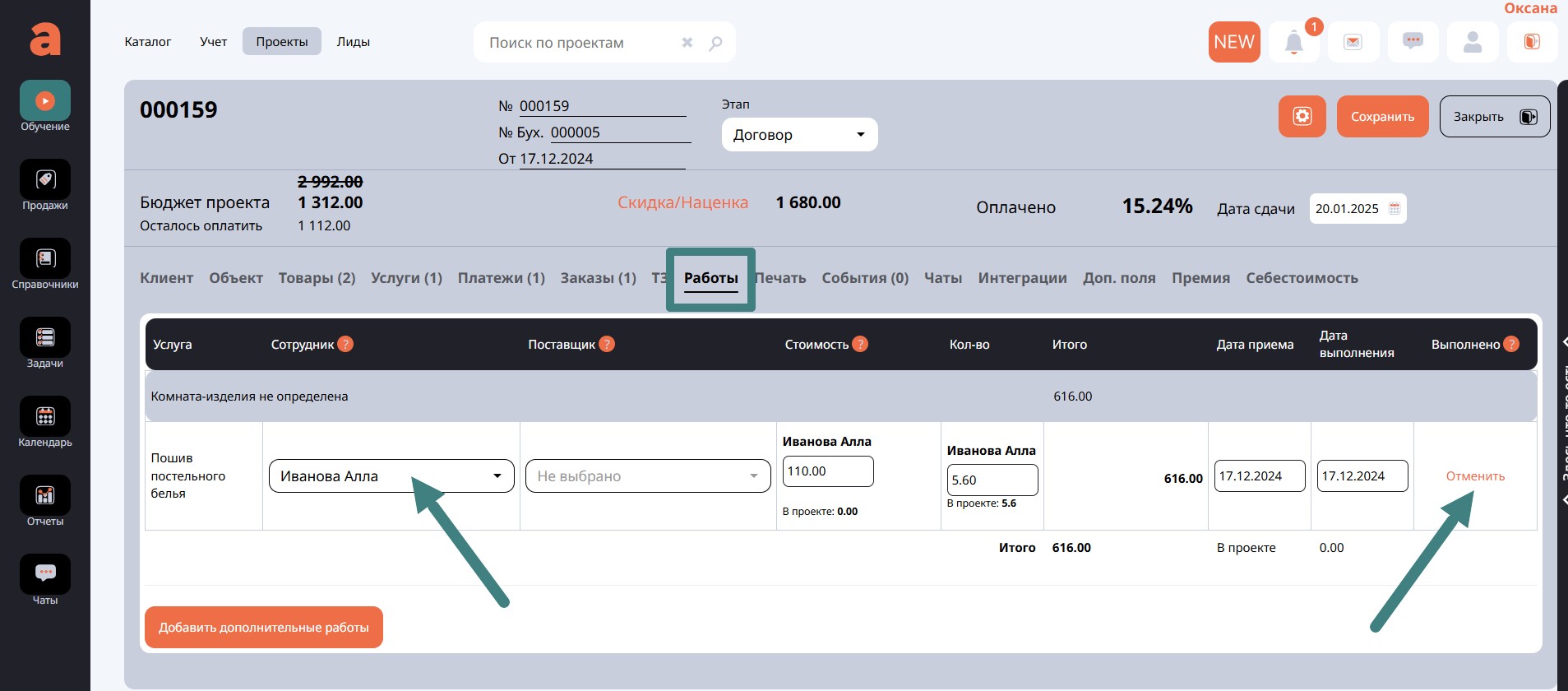Значит, чтобы удалить проект, необходимо сначала удалить все документы, которые вы создавали из проекта. Перейдем в проект на вкладку Работы.