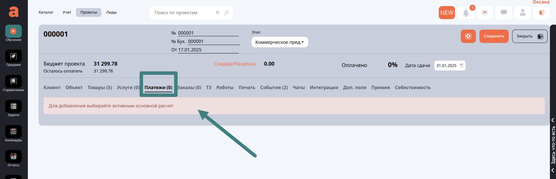 При переходе в Платежи программа вас предупредит.