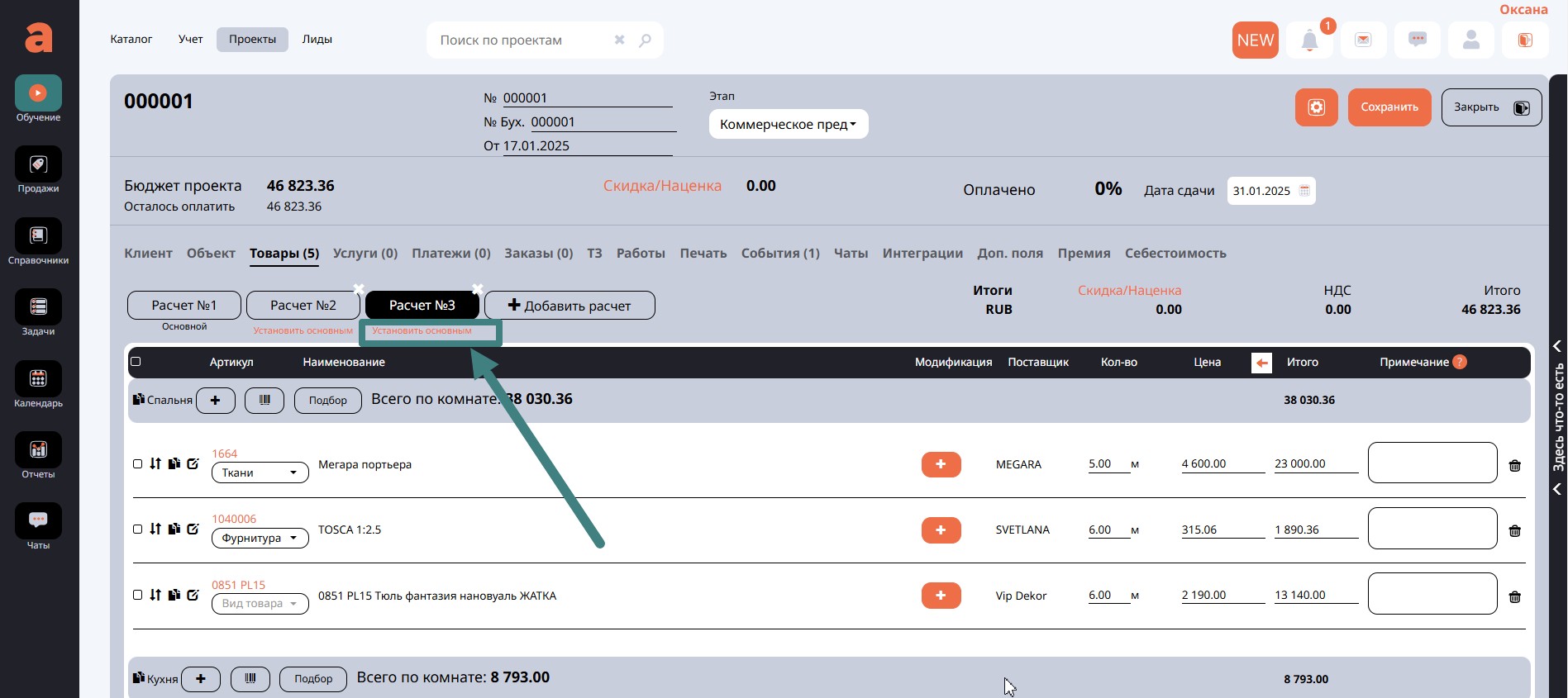 После утверждения клиентом варианта расчета, вам необходимо сделать этот вариант Основным.