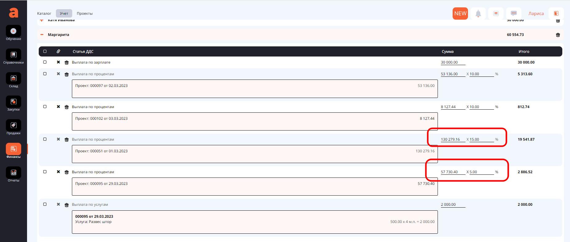 У сотрудника определились продажи с суммой больше 20 000. Значит процент начисления будет = 10.
