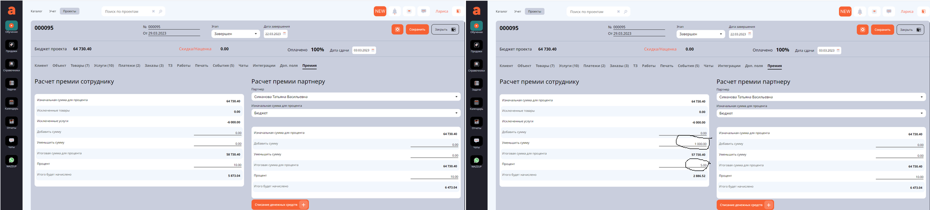 В проекте на вкладке Премия эти базовые настройки можно дополнить и частично изменить.