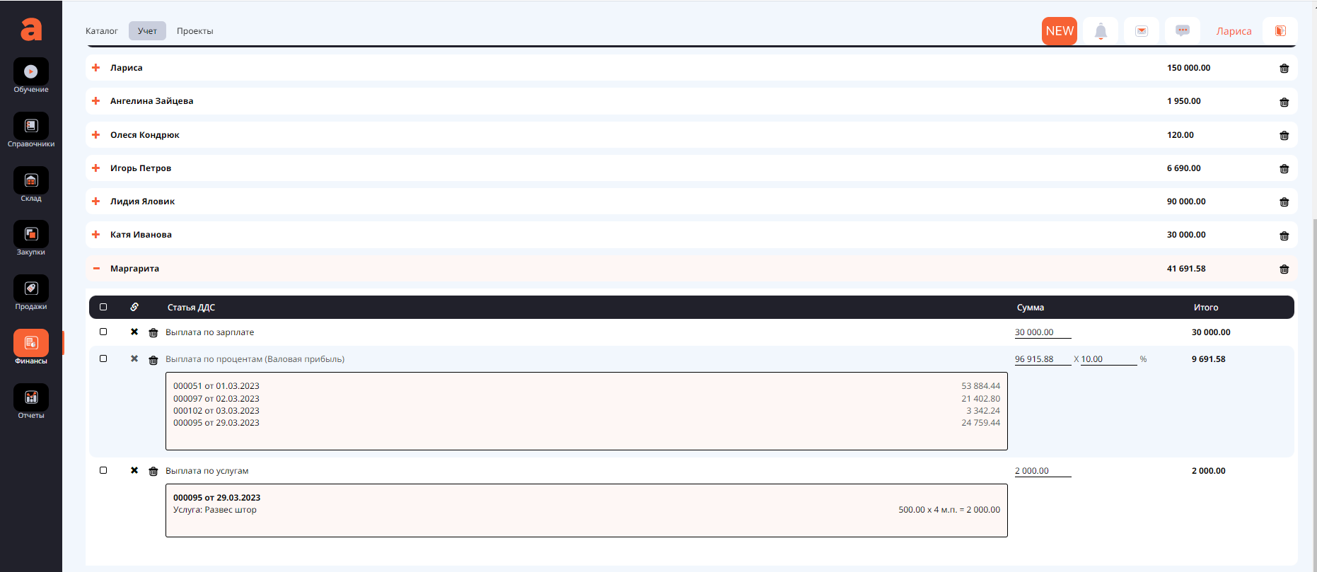 Сотрудники. Как назначить премию от суммы валовой прибыли.
