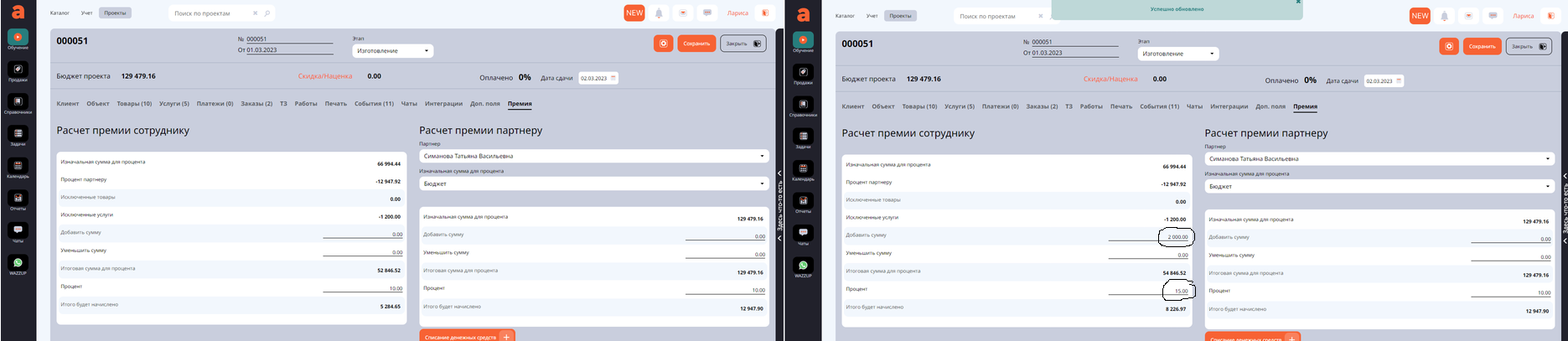 Рассчитаем зарплату. Изменения в расчете премии в одном из проектов перенеслись общий расчет премии в расчете зарплаты.