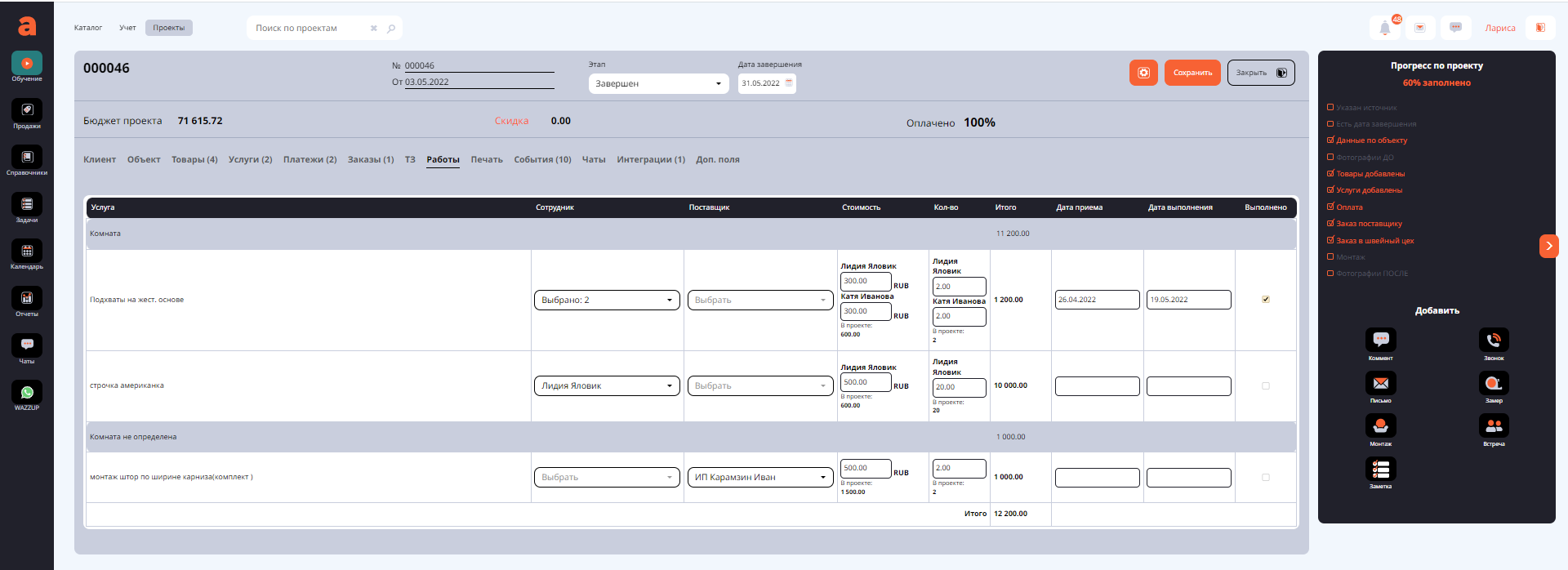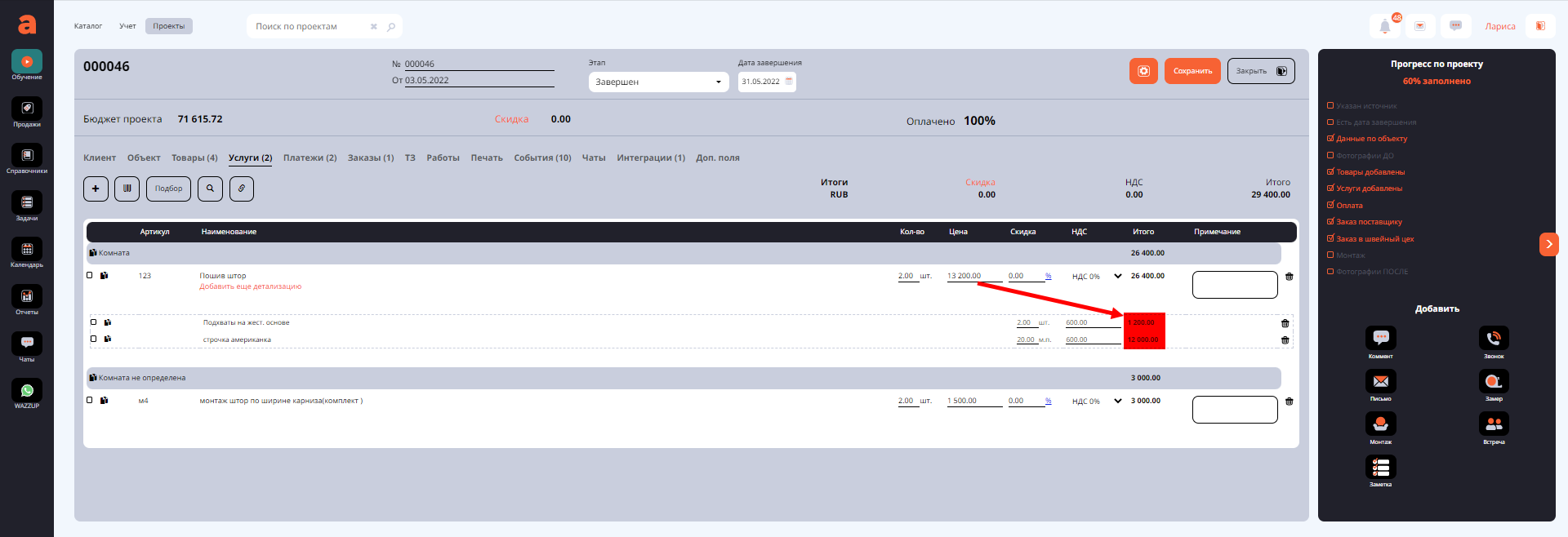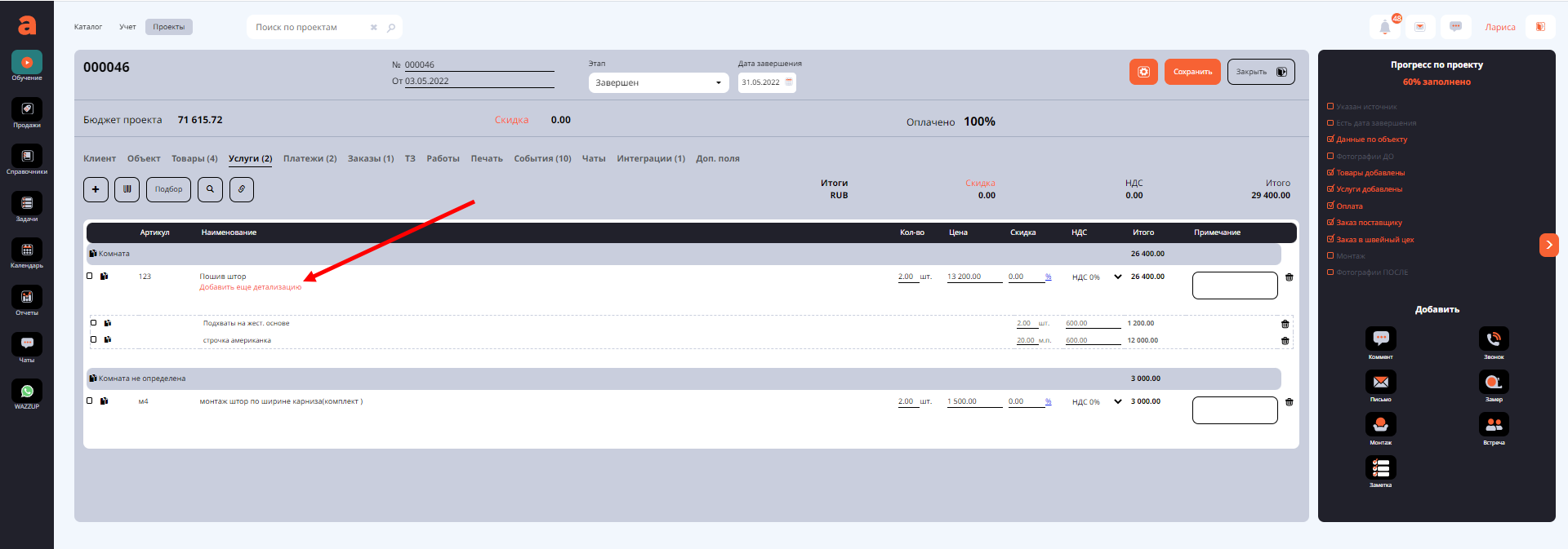 А далее действуем обычным способом, посмотрите видео о вкладках проекта Тз и Работы https://youtu.be/TuQmTstDx9I
