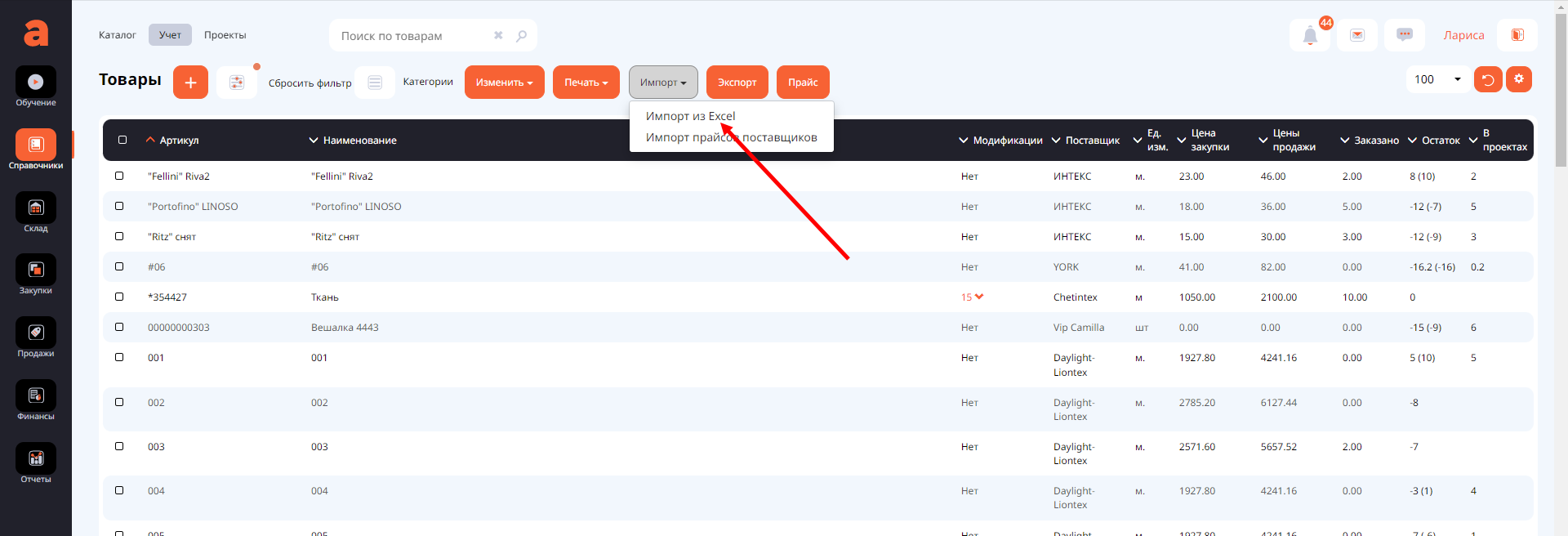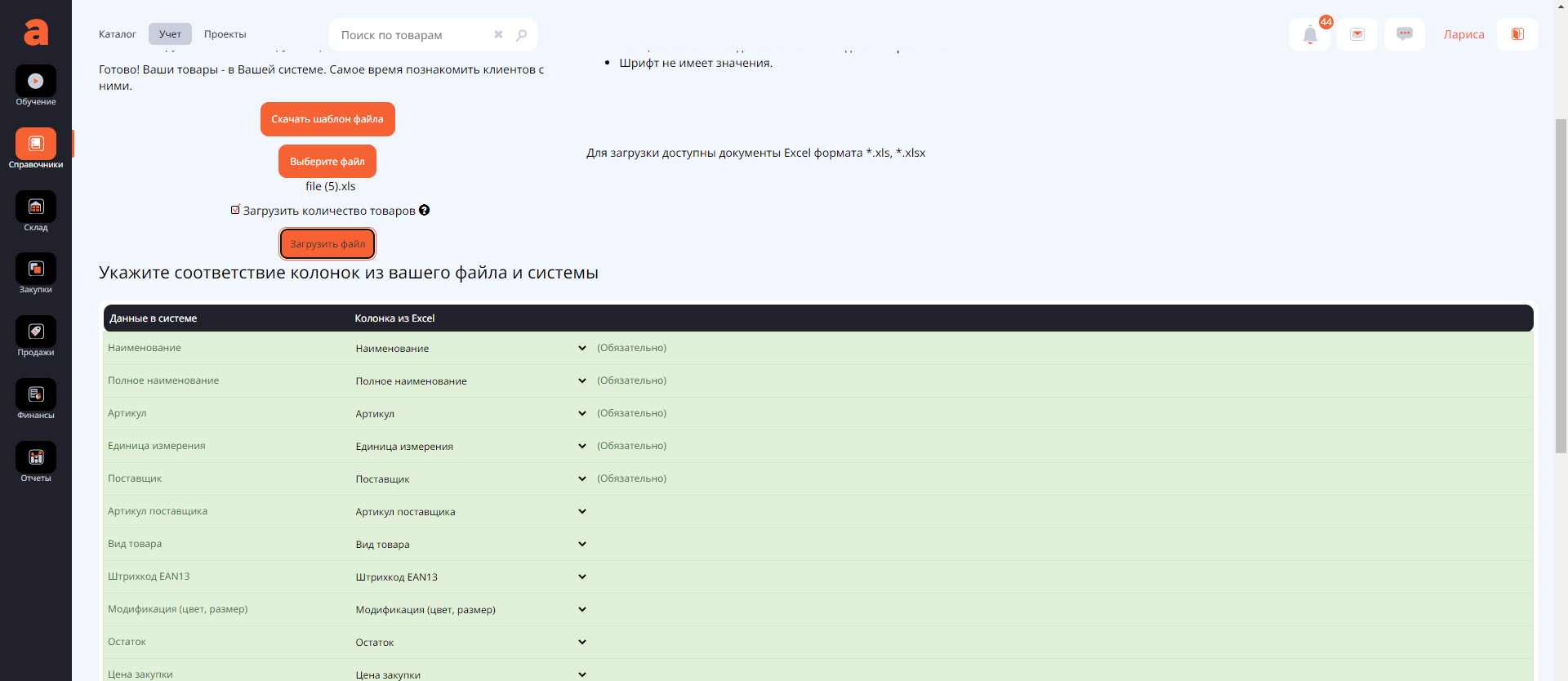 Импорт товаров из excel