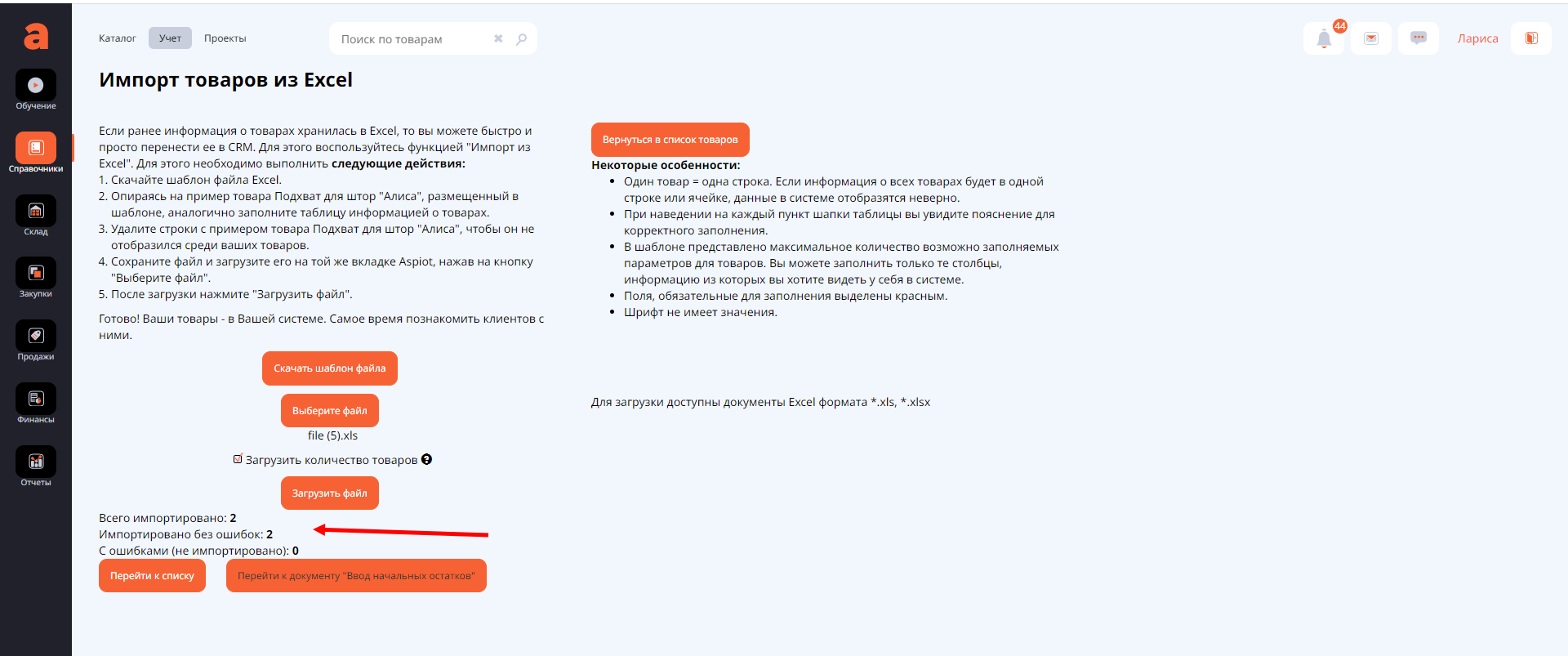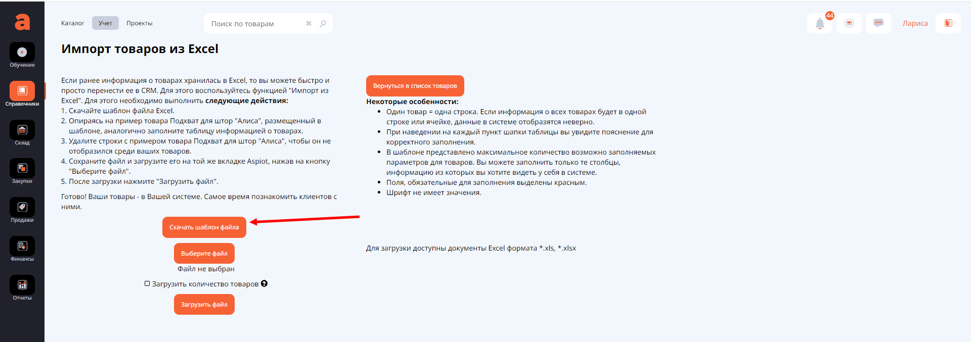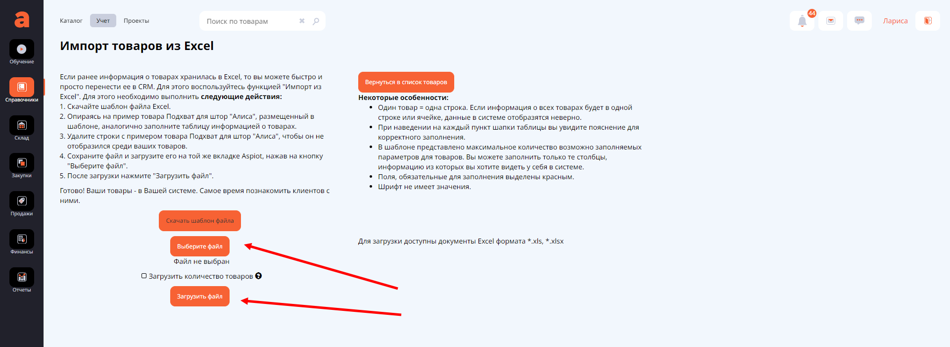 В системе Аспиот предусмотрена возможность загрузить все ваши товары разом, не прибегая к ручному вводу. Что для этого нужно сделать?