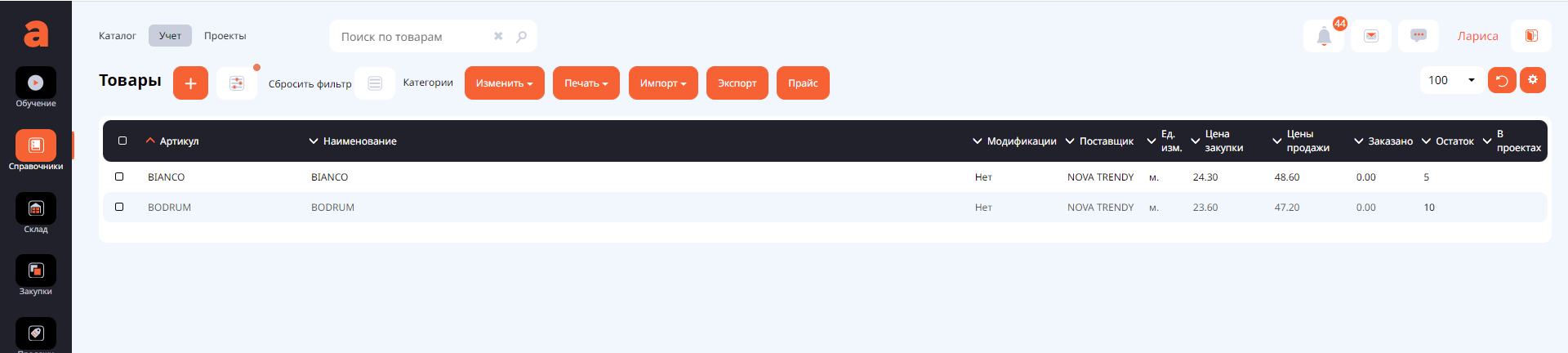 Давайте посмотрим что загрузилось в справочник товаров