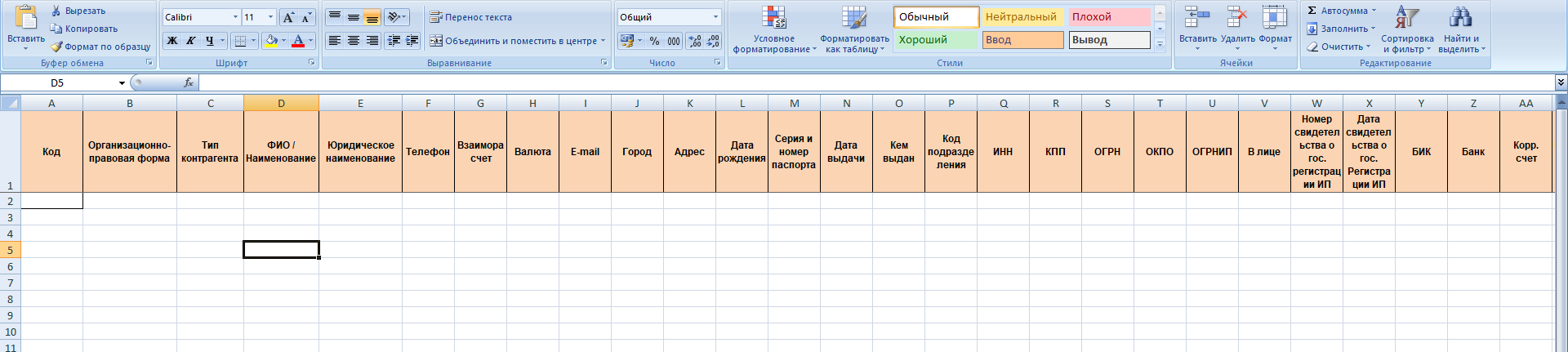 Мы не рекомендуем во избежание ошибок никаким образом изменять шаблон, так как все столбцы шаблона соответствуют полям базы данных системы Аспиот.
