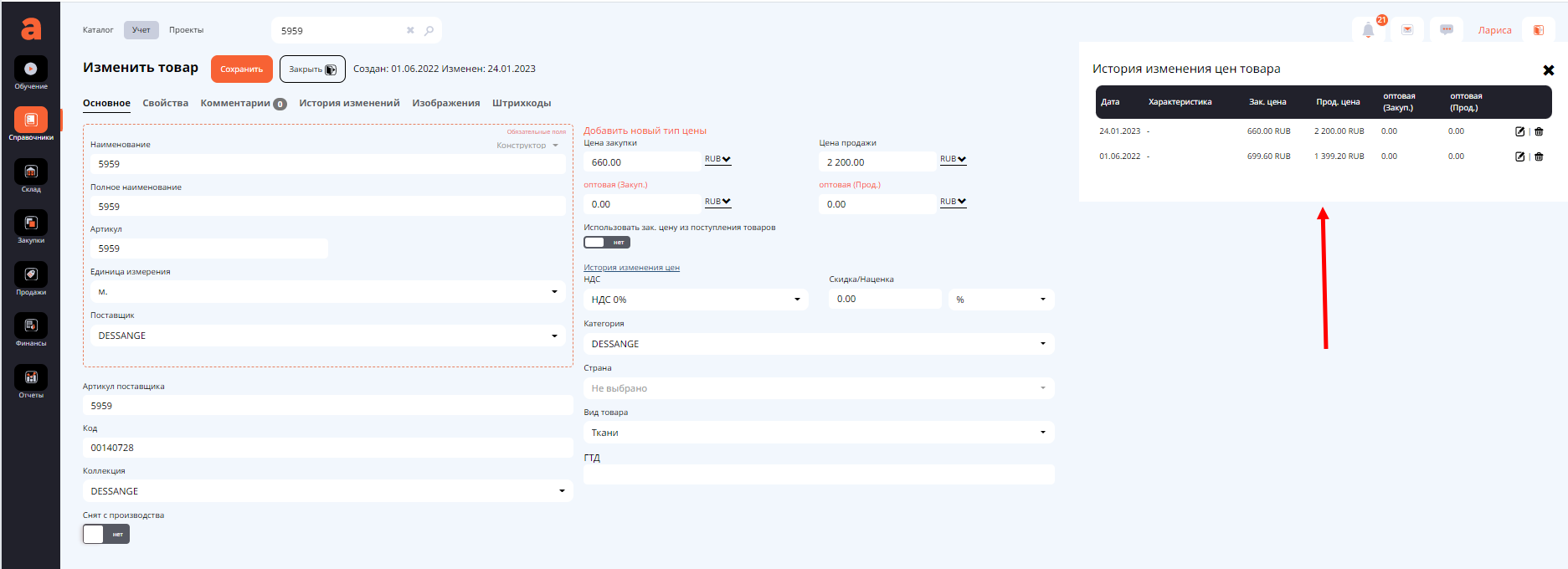 Перейдем в Справочник товаров, найдем этот товар и посмотрим на его цены.